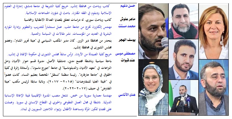 يوسـف الهجـر   : ينحدر من محافظة دير الزور. كان مدير المكتب السياسي في “هيئة تحرير الشام”، وعضو مجلس الشورى في محافظة إدلب.